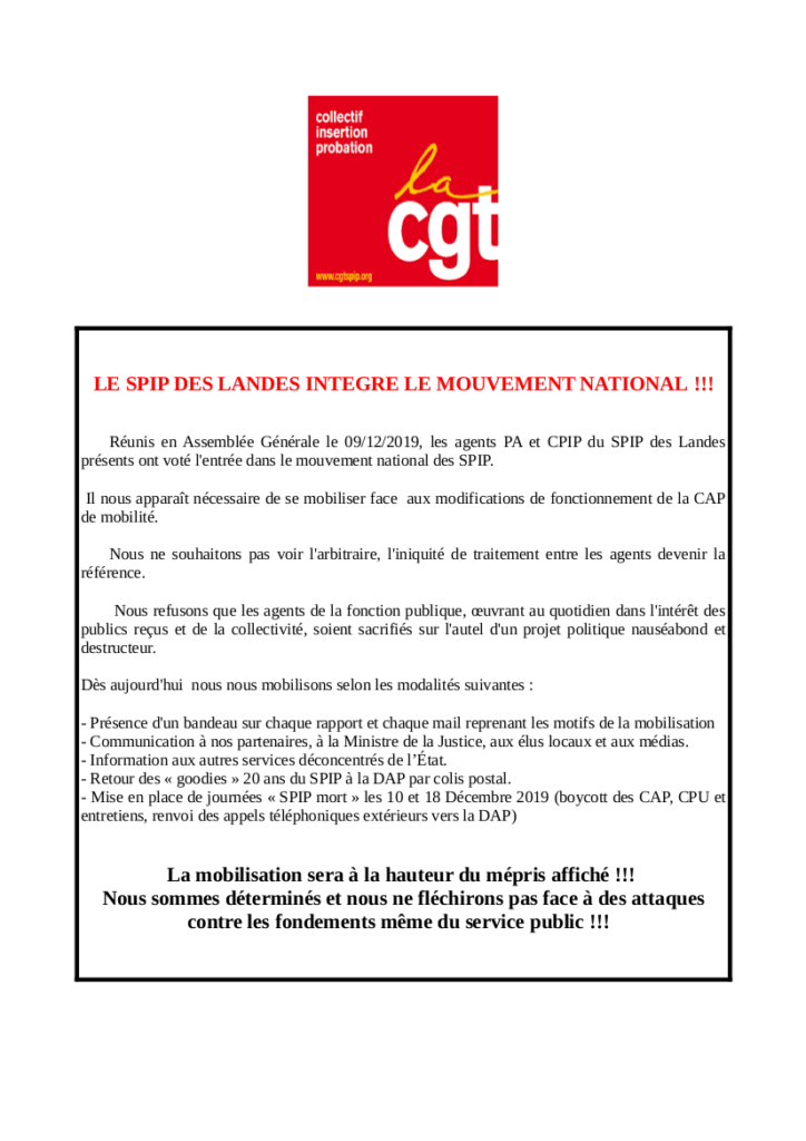# 10 décembre : le spip des landes rejoint le mouvement