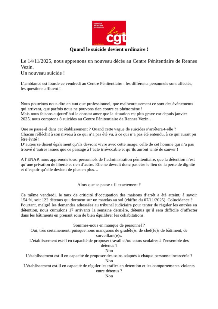 CGT IP 35 : Quand le suicide devient ordinaire !