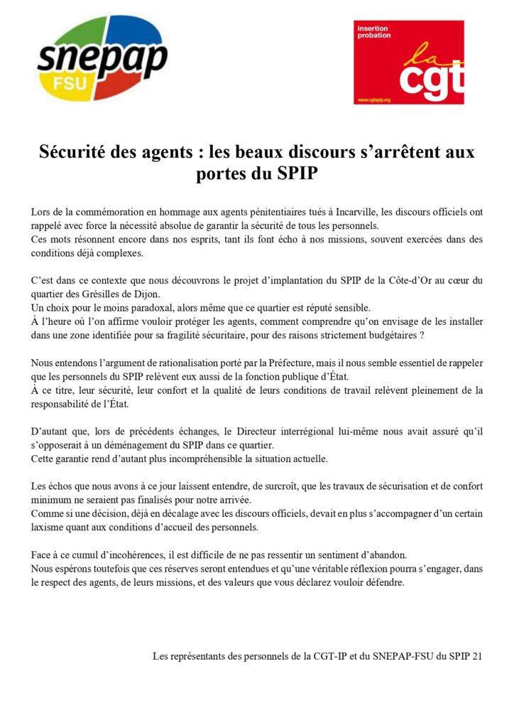 CGT SPIP 21 – déclaration liminaire au CSA du 10 octobre 2025