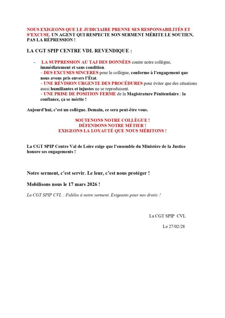 CGT SPIP Centre Val de LoireCVDLsoutien SPIP 95