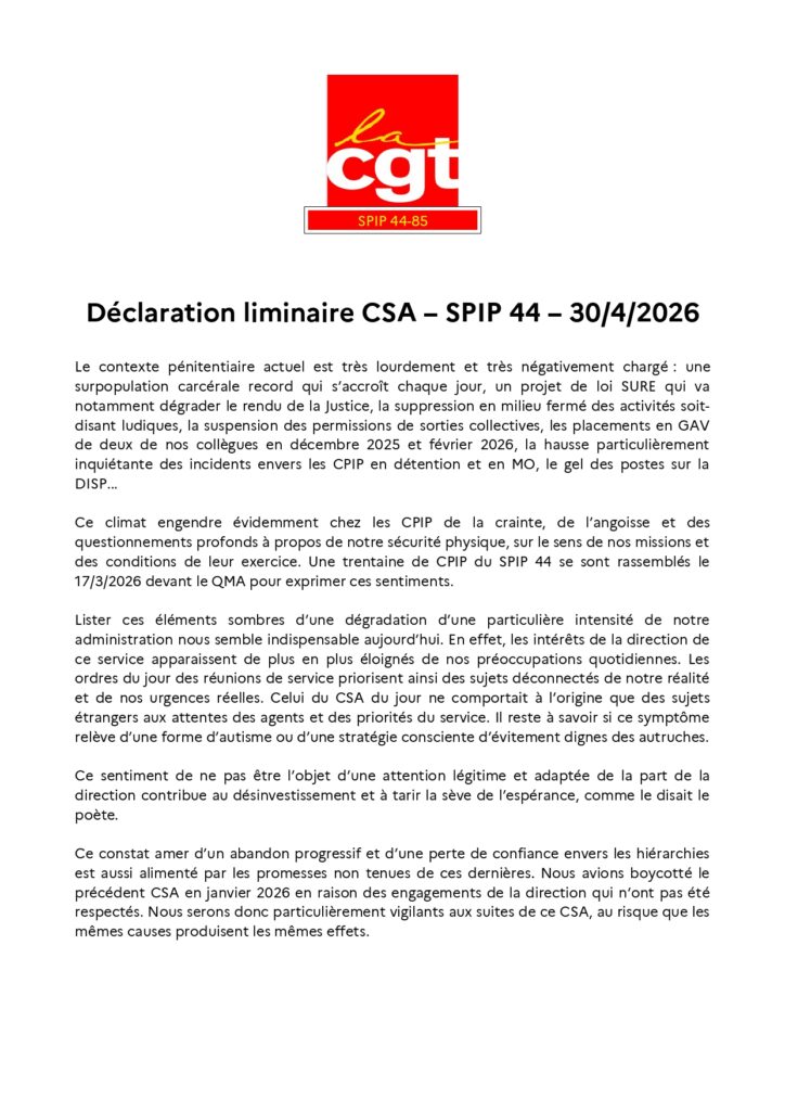 • Résultats des CSA de chaque SPIP DISP par DISP