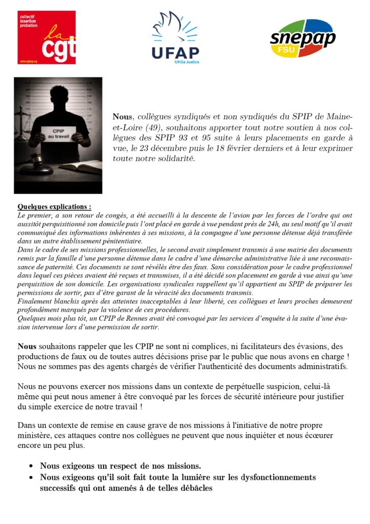 SPIP 49: 17 MARS SOUTIEN AUX COLLEGUES