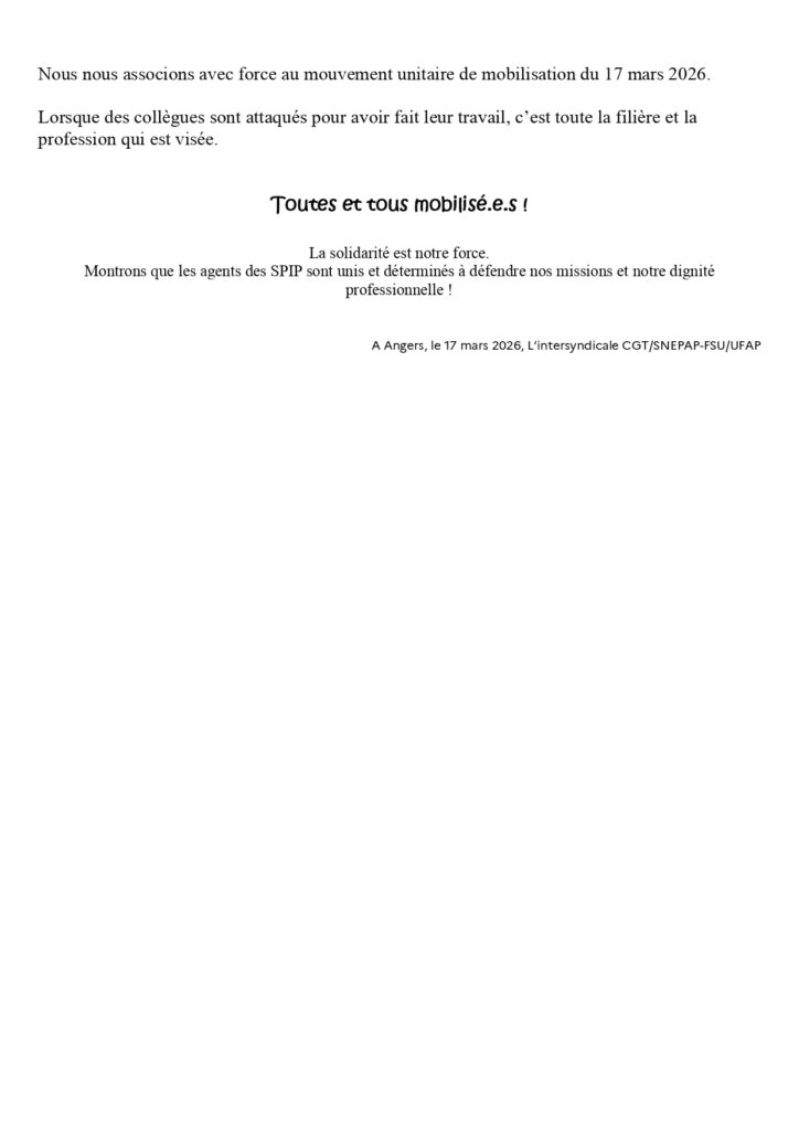 17 marsmobilisationsoutien aux collèguesSPIP 49