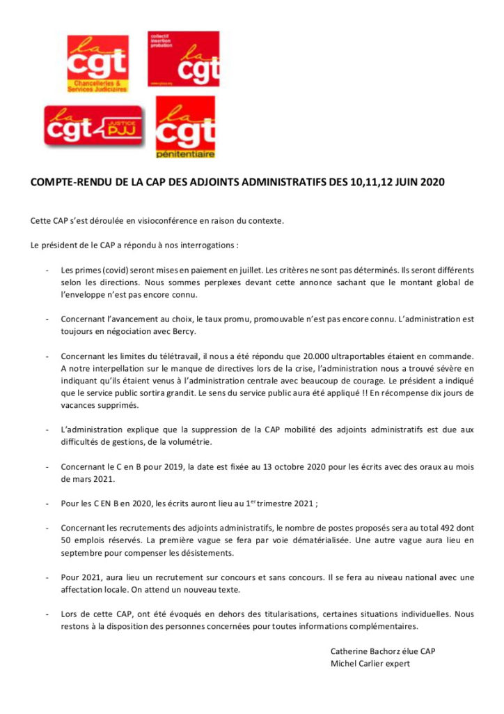 Adjoints administratif / TITULARISATION juin 2020 : déclaration liminaire, compte rendu et résultats