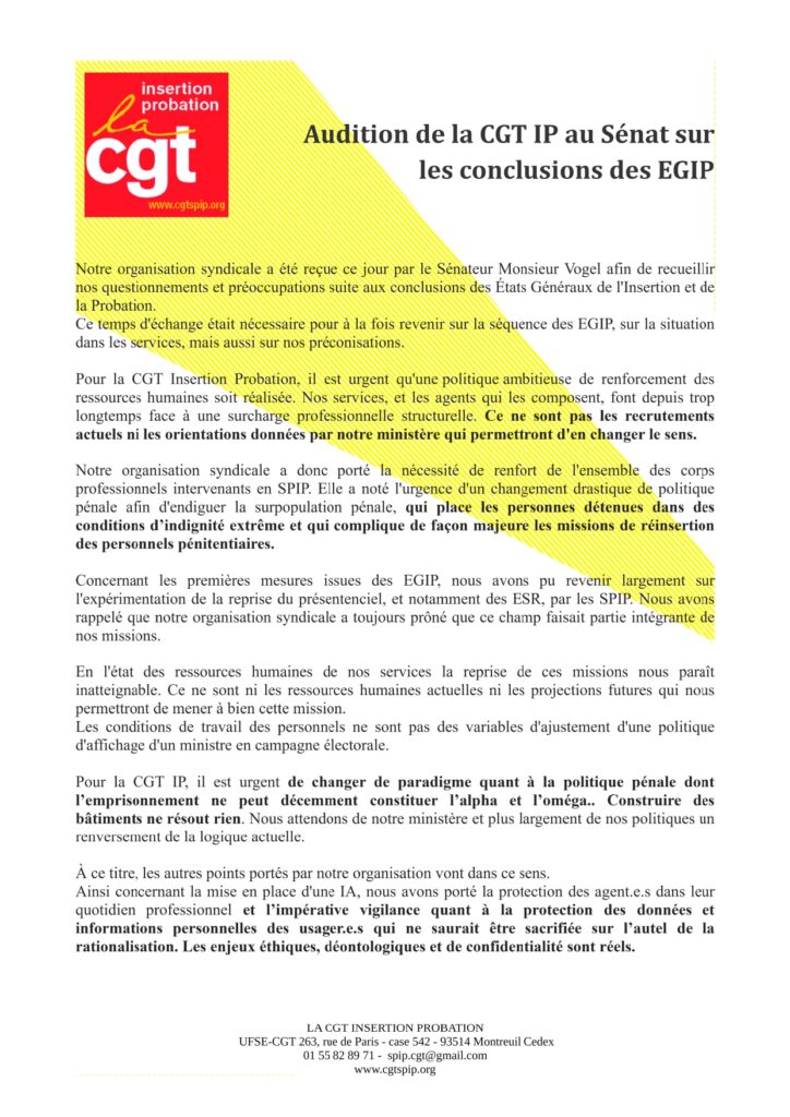 Audition de la CGT IP au Sénat sur les conclusions des EGIP