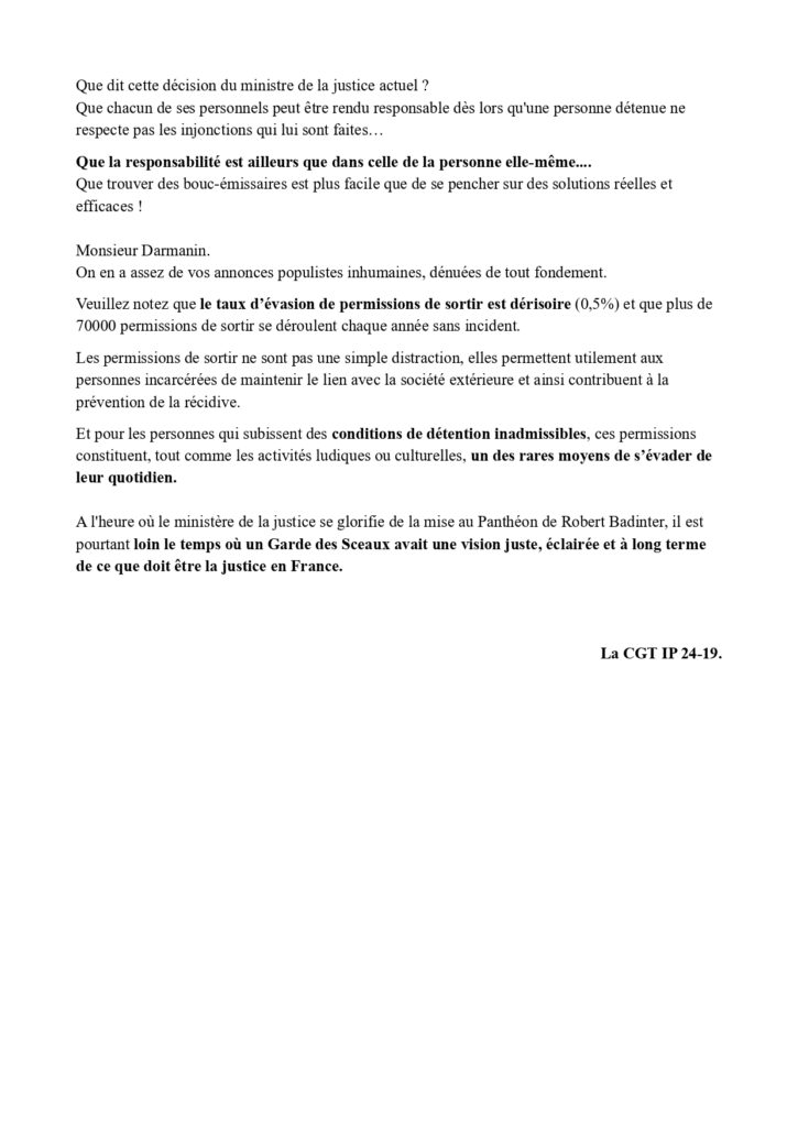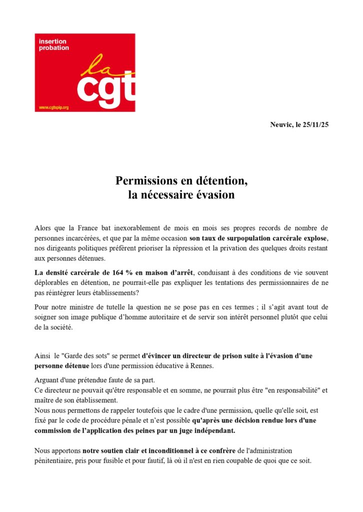 CGT IP 24/19 – permissions en détention, la nécessaire évasion