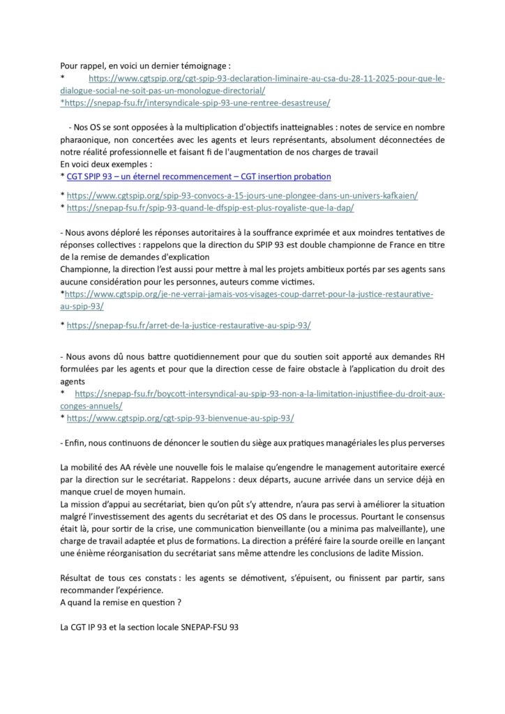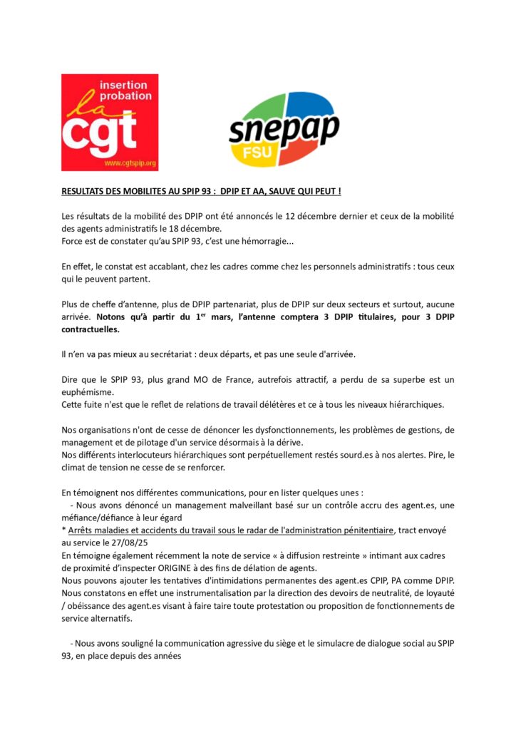 CGT IP 93 – tract intersyndical: Résultats des mobilités au SPIP 93: DPIP et AA, sauve qui peut !