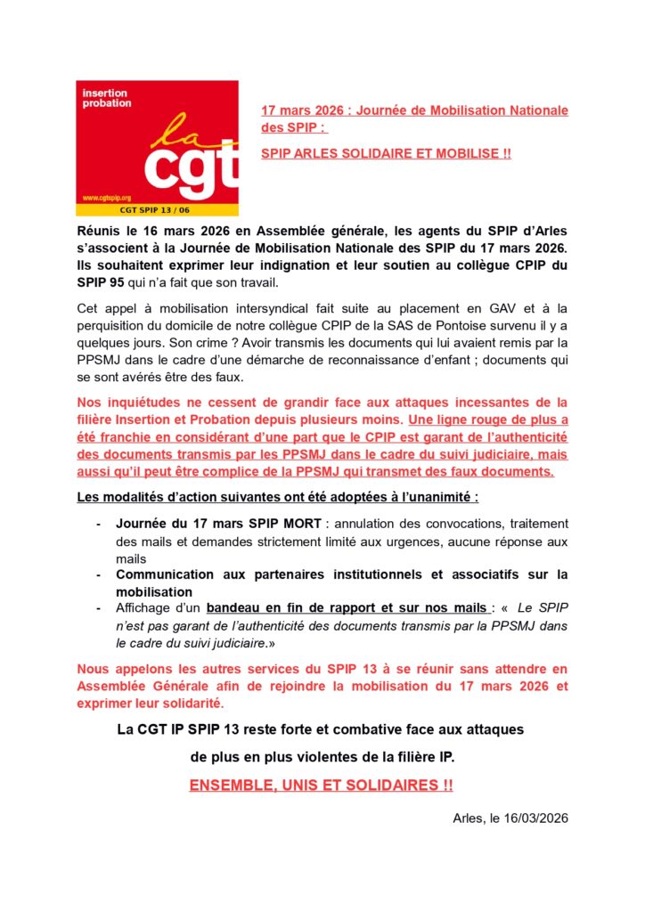 CGT SPIP 13/06: SPIP d’Arles solidaire et mobilisé!!