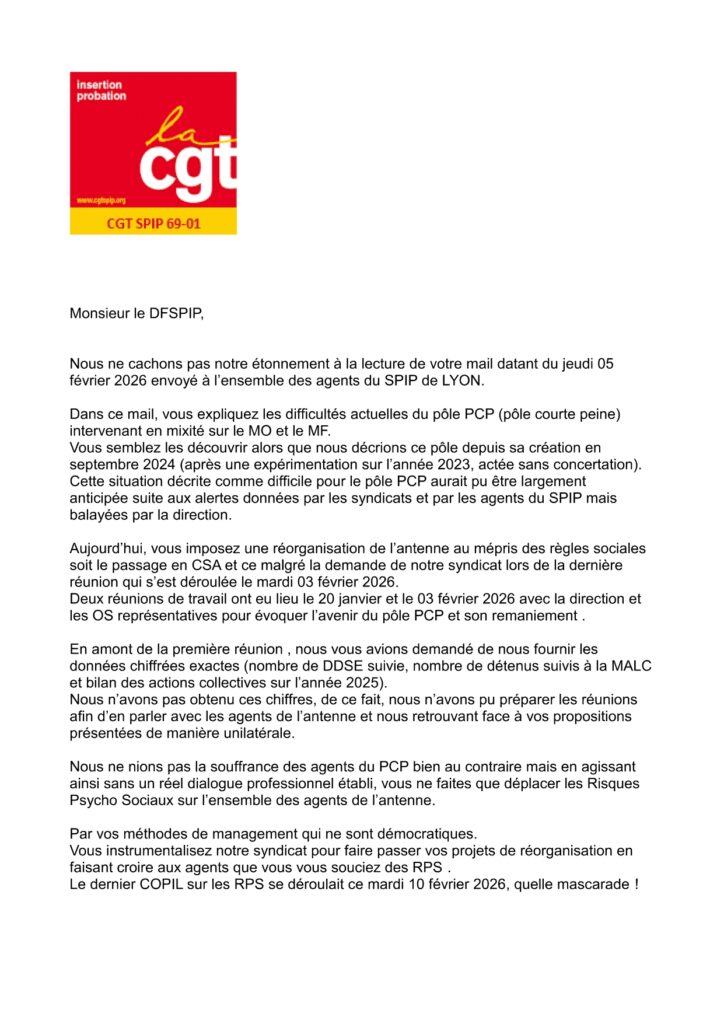 CGT SPIP 69-01: Lettre au DFSPIP