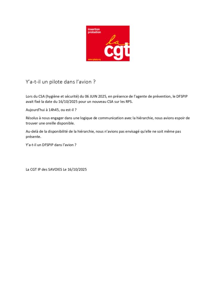 CGT SPIP SAVOIES RPS : Y-a-t-il un pilote dans l’avion ?