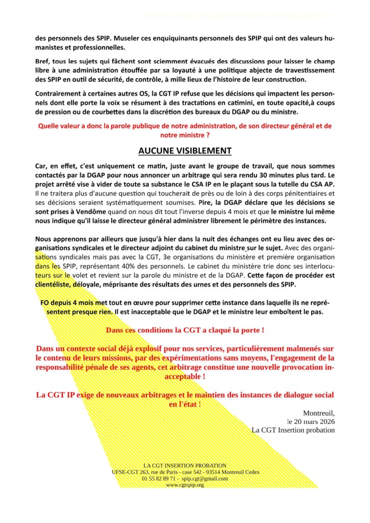 Clientélisme, déloyauté et mépris : une fois de plus la DGAP et le ministère trahissent les agents des SPIP !