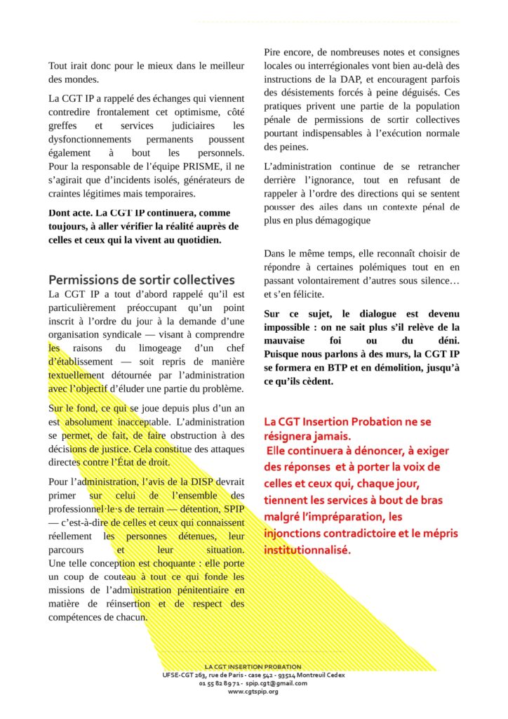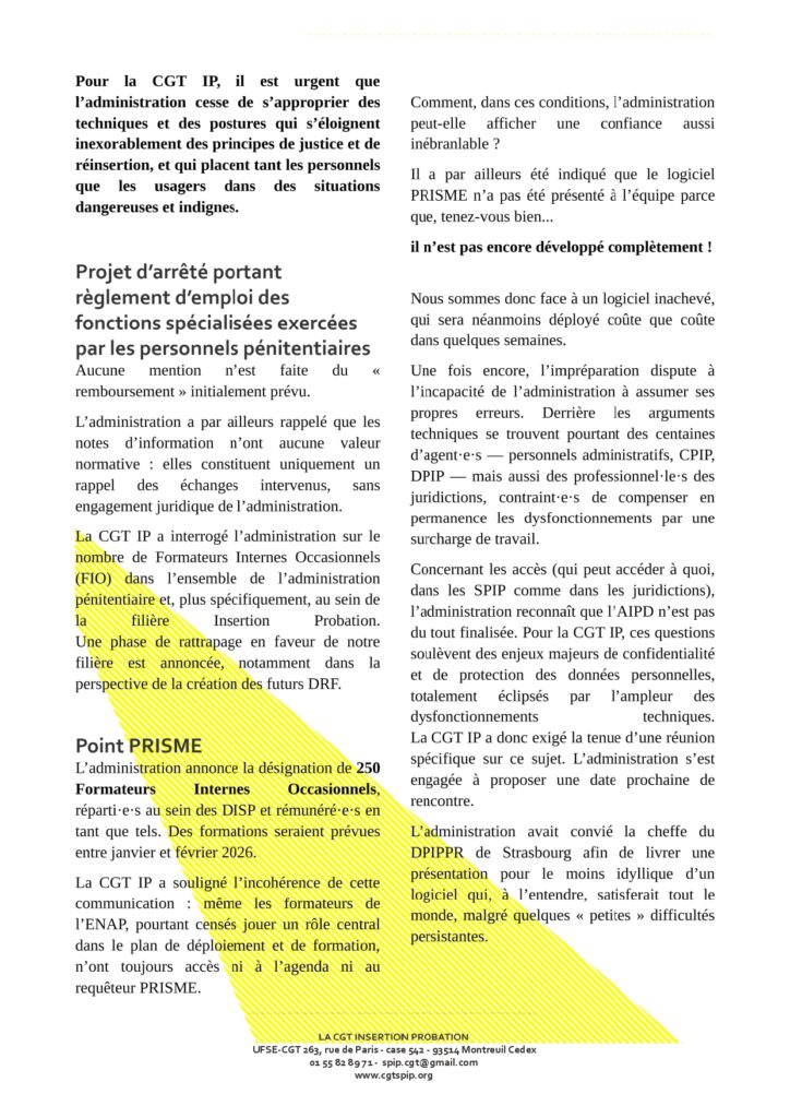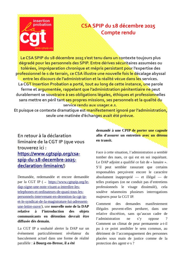 CSA SPIP 18 décembre compte-rendu CGT IP