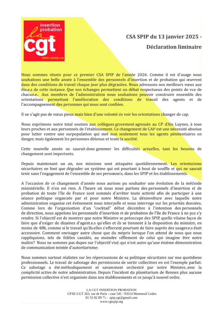 CSA SPIP du 13 janvier 2026 – déclaration liminaire
