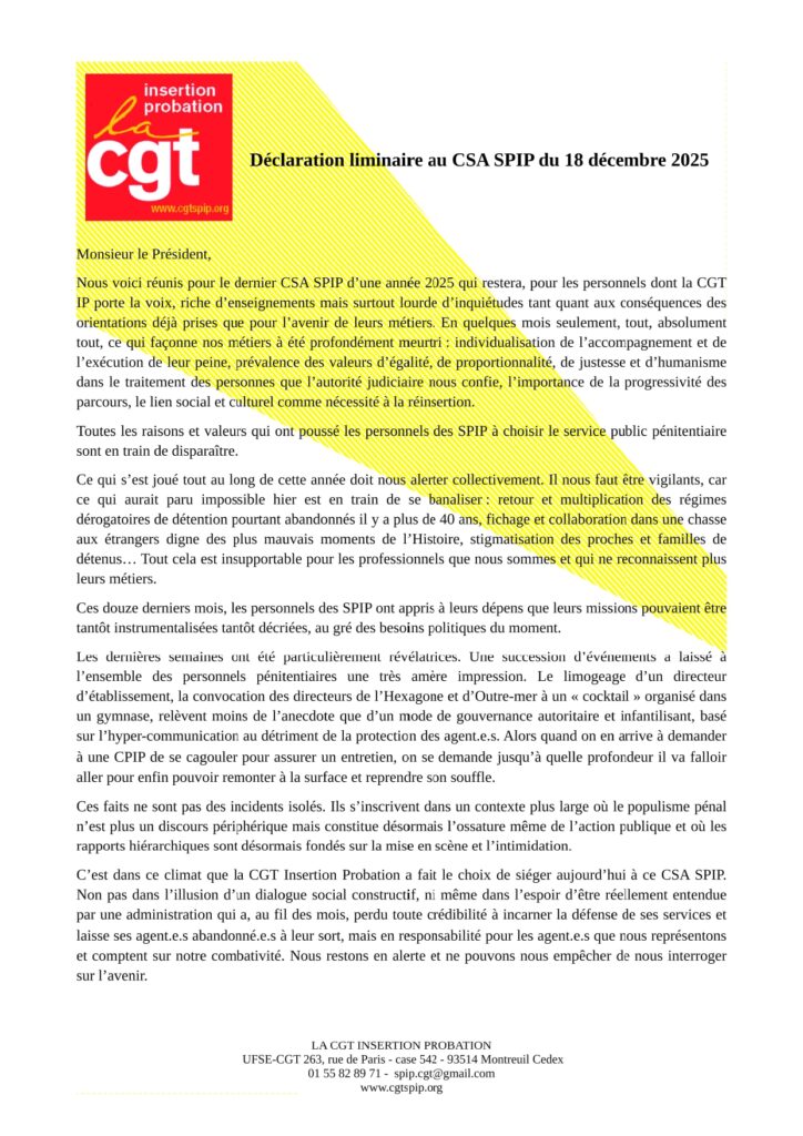 CSA SPIP du 18 décembre 2025 – déclaration liminaire