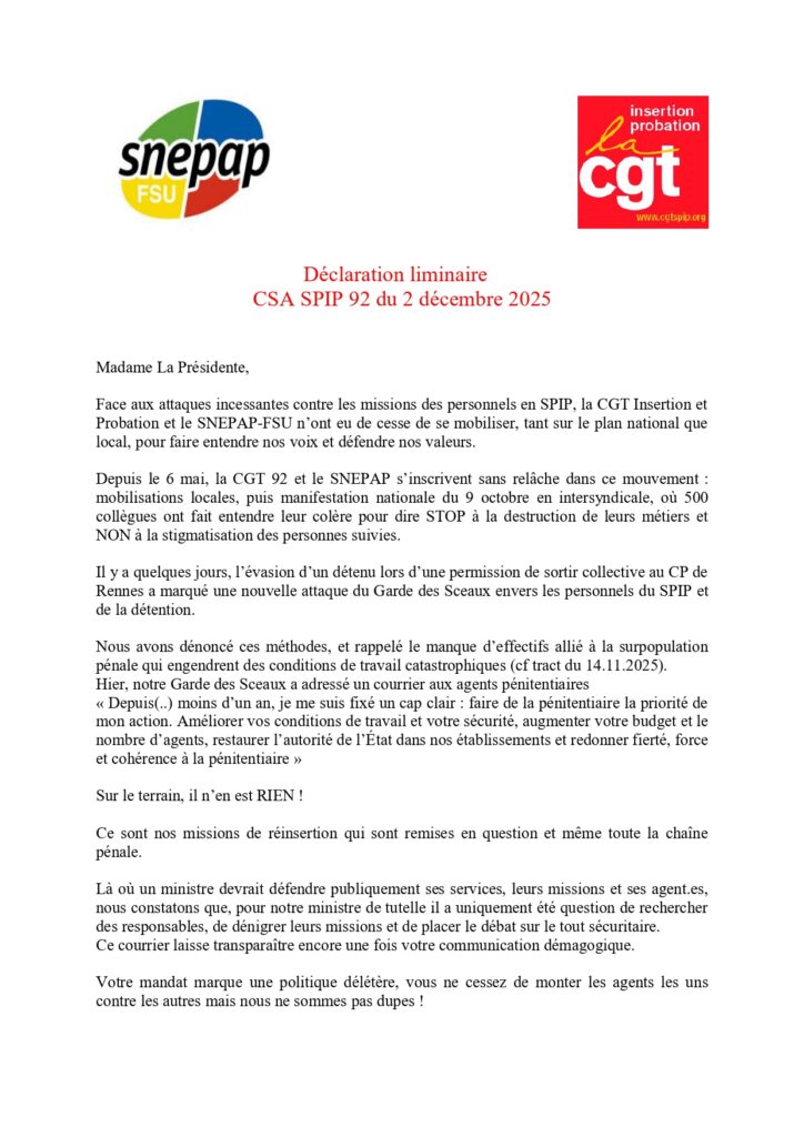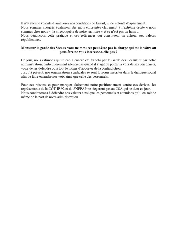 Déclaration de boycott CGT/SNEPAP CSA SPIP 92