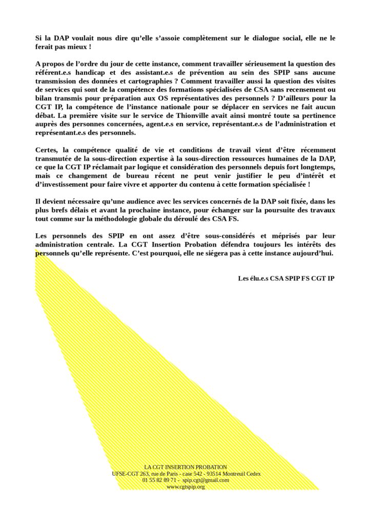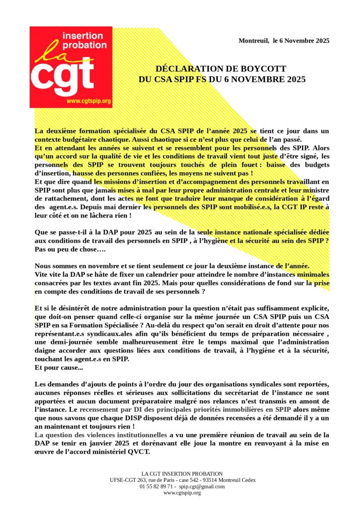 Déclaration de boycott du CSA SPIP FS du 6 novembre 2025