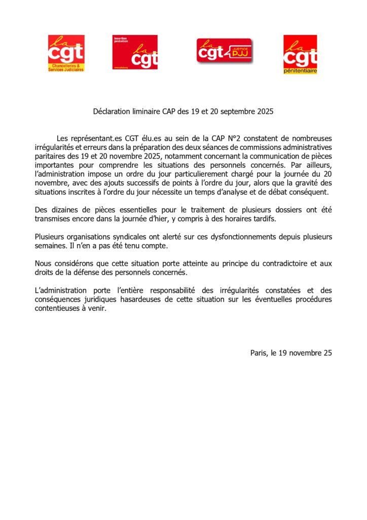 Déclaration Liminaire à la CAP n° 2 du corps d’encadrement des 19 et 20 septembre 2025