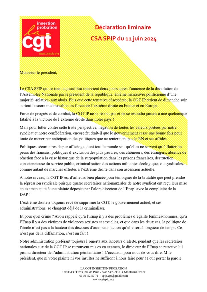 DECLARATION LIMINAIRE CSA SPIP DU 11 JUIN 2024