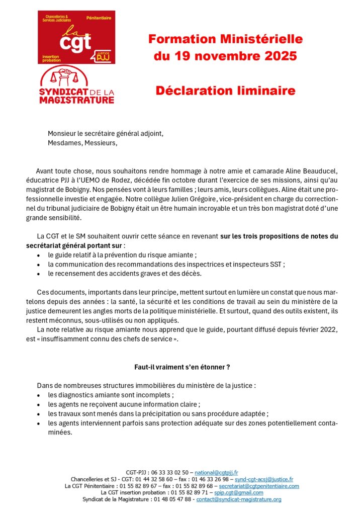 Déclaration liminaire Formation Spécialisée Ministérielle du 19/11/2025