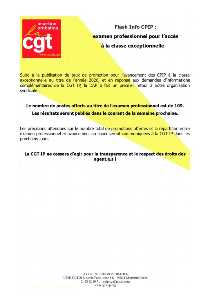 Flash Info CPIP : examen professionnel pour l’accès à la classe exceptionnelle