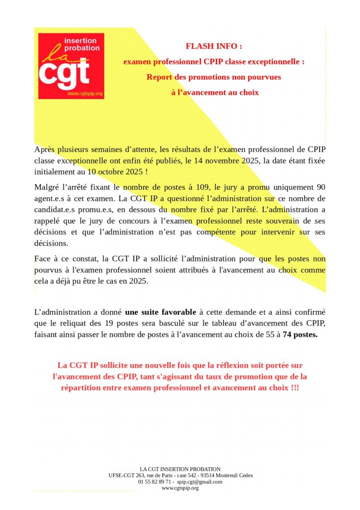 Flash Info : examen professionnel CPIP classe exceptionnelle : Report des promotions non pourvues à l’avancement au choix
