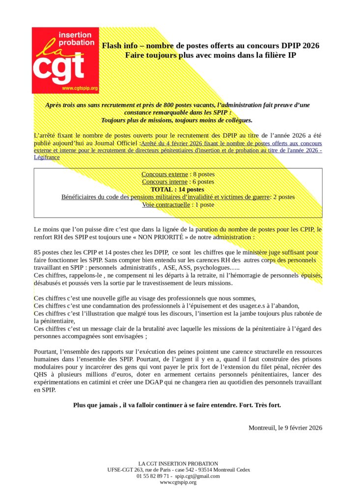 Flash Info- nombre de postes offerts au concours de DPIP 2026- Faire toujours plus avec moins dans la filière IP