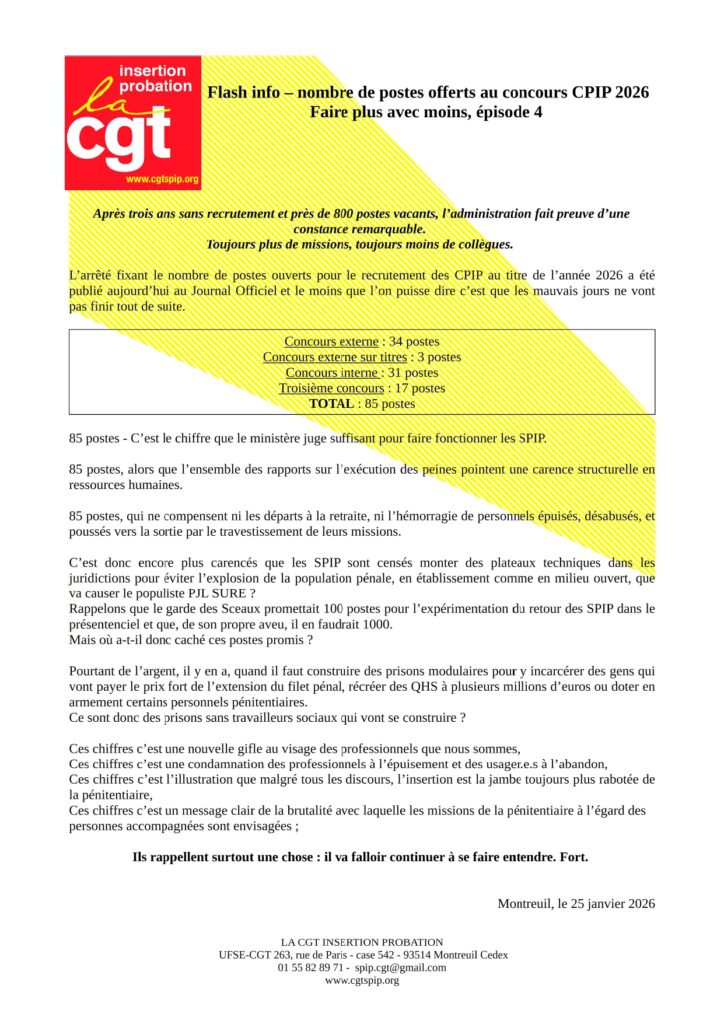 FLASH INFO – postes ouverts au concours CPIP 2026 : faire plus avec moins, épisode 4