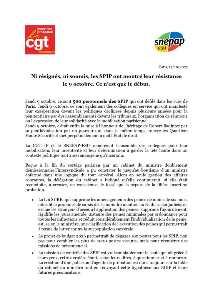 Ni résignés, ni soumis, les SPIP ont montré leur résistance. Le 9 octobre, ce n’était que le début !