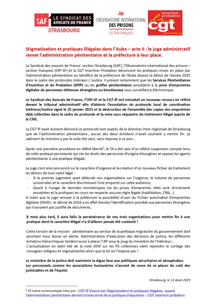 Suite à la tentative de censure dont a été l'objet la CGT IP par la suspension de son site, un avocat spécialisé a été consulté. Celui ci, comme le droit en la matière de liberté d'expression syndicale, nous ont conforté.es dans notre bon droit à re-publier nos communications qui avaient fait l'objet d'un signalement abusif. Ceux ci sont donc à nouveau accessibles en une comme au sein des communiqués locaux ! La CGT IP ne renoncera jamais à dénoncer et à porter la voix des victimes de violences sexistes et sexuelles !!