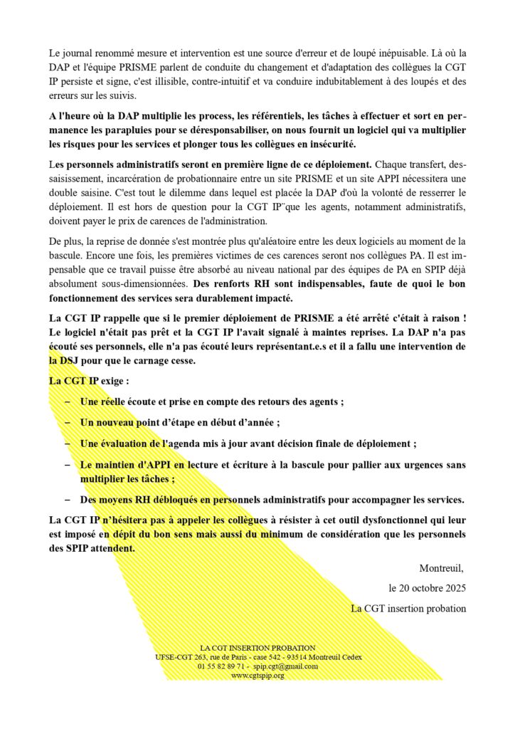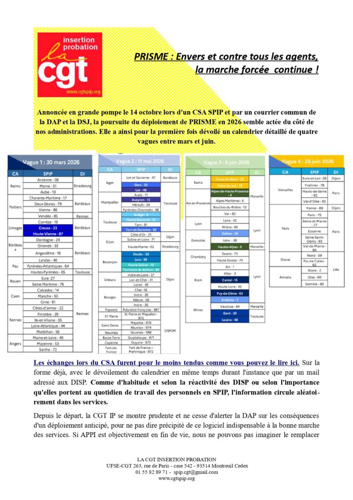 PRISME : Envers et contre tous les agents, la marche forcée continue !